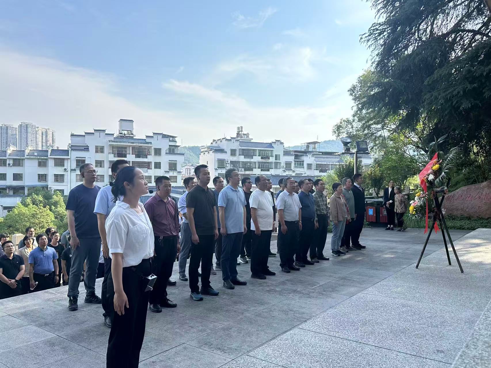 与会人员向革命先烈瞿秋白烈士纪念碑敬献花篮