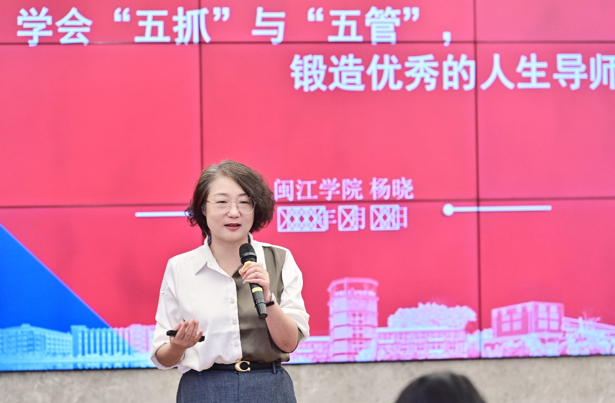 聘任仪式后,杨晓以《学会“五抓”与“五管”,锻造优秀的人生导师》为题,带来首场专题培训。她从辅导员工作的时代性、发展性、重要性切入,提出要凝聚思政引领力、擦亮辅导员“三原色”,并围绕“五抓”与“五管”核心方法,结合高校育人实例,为辅导员详解如何用心用情做好学生工作,清晰解答了“做什么”“怎么管”的关键问题。